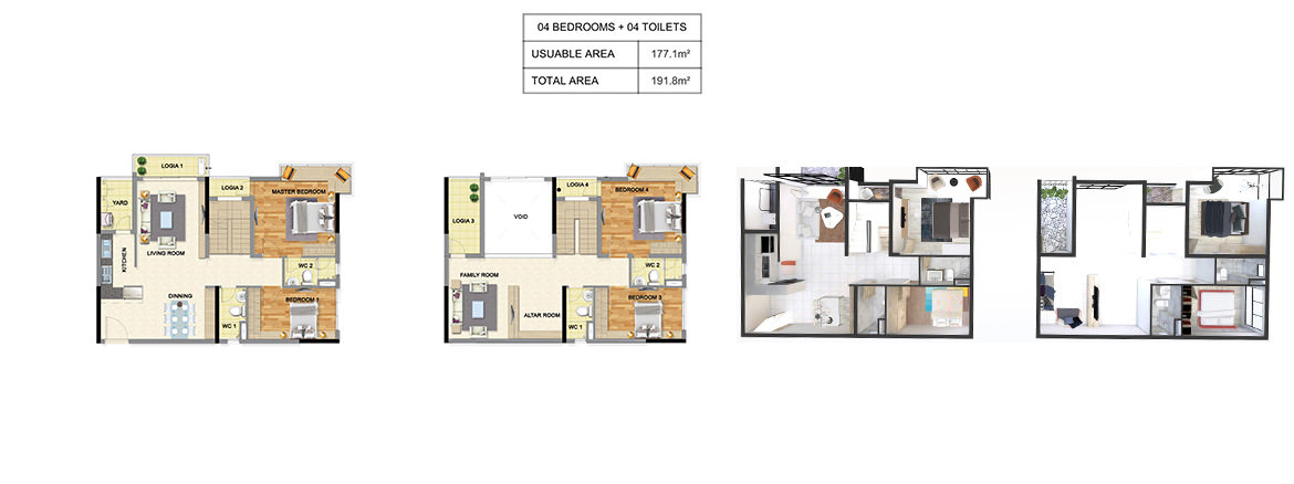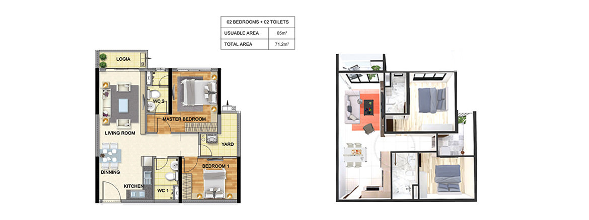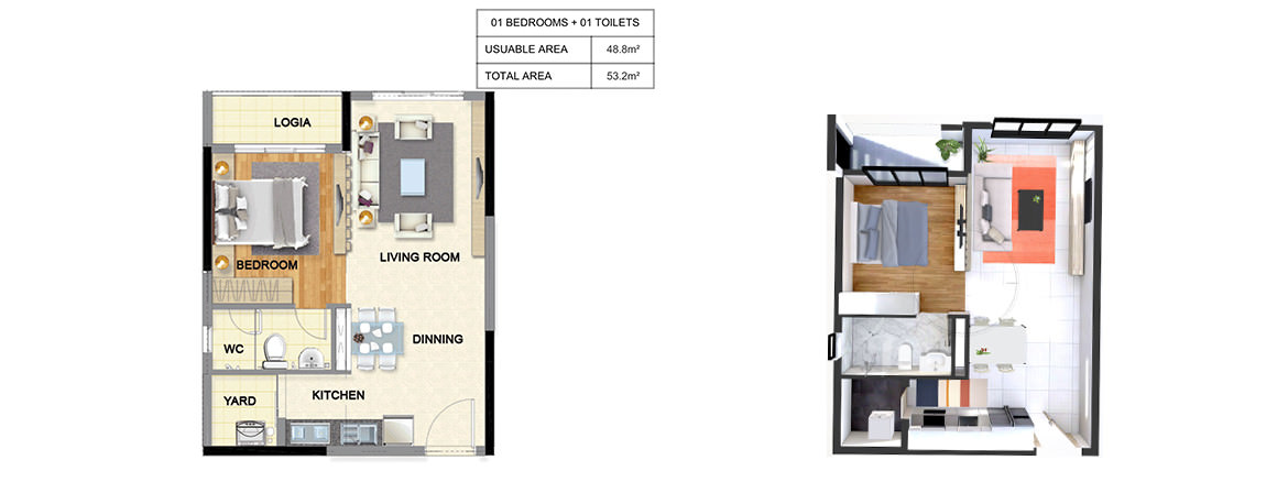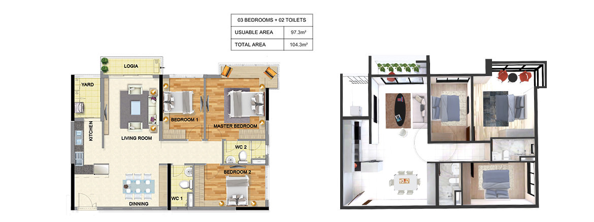 Thiết kế căn hộ thông mình từ 1-3 phòng ngủ, 90% căn hộ có ban công kính.